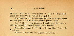 Dem kann nicht gefolgt werden. Einzig möglicher Grund für eine Abänderung der Schreibweise wäre, dass sie fehlerhaft ist. Rebel (1901: 185-186) hatte den Artnamen in seiner Erstbeschreibung nur einmal erwähnt – es gibt also keine unterschiedlichen Schreibweisen in dieser Erstbeschreibung. Und da diese Schreibweise vom gleichen Autor auch im Katalog von Staudinger & Rebel (1901: 241) verwendet wurde, kann ein einfacher Schreibfehler des Autors oder ein Fehler des Setzers nahezu ausgeschlossen werden. Die Nennung des Fundorts „Lambessa“ ist kein zwingender Grund, hier einen Fehler anzunehmen, zumal der Namen ja nicht durch den Erstbeschreiber, sondern durch Otto Staudinger gewählt wurde. Es ist durchaus wahrscheinlich, dass jener dabei nicht an „Lambessa“, sondern an „Lambèse“ gedacht hatte, den üblichen Namen in der Zeit als französische Kolonie. [Mit mindestens gleicher Berechtigung könnte man sonst auch eine Emendierung des Namens zu „lambaesella“ ableiten, nach dem lateinischen Namen Lambaesis oder Lambaesa für diesen Ort.]