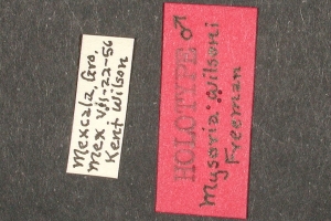 13-15: Holotypus ♂ von Mysoria wilsoni Freeman, 1969, Daten siehe Etiketten (fot.: Bernard Hermier, Fotos bearbeitet: Michel Kettner), coll. American Museum of Natural History. New York City.
