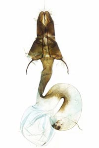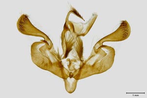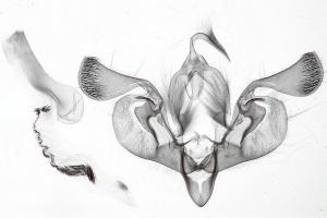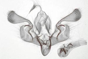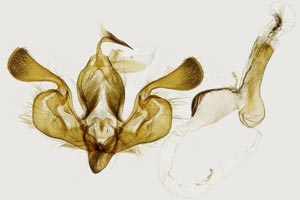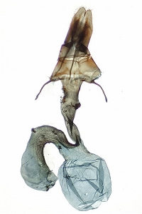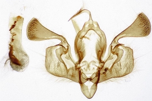 1: Genitalpräparat eines im Forum abgebildeten ♀, Österreich, Steiermark, Fischbacher Alpen, St. Kathrein am Offenegg, Sommeralm, 1400 m, am Licht, 18. August 2017 (Präparation & Foto: Horst Pichler), det. Daniel BartschForum