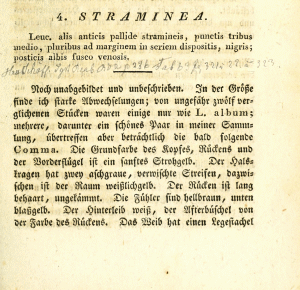 (stramineus aus Stroh gefertigt, wegen der Farbe der Vorderflügel).