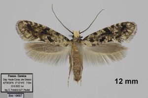Synonym Nemapogon inexpectata: Varenne & Nel (2017: 51): « « inexpectata », espèce dont l'existence n'était même pas soupçonnée parmi les Nemapogon aux ailes « blanches ». »