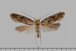 «Holotypus ♂, L[ichtfang] 30.06.2019, CH FR Vully-le-Bas, Le Vaillet, 595 m, 573/201, 46°57'54"N, 7°05'50"E, leg. R. Bryner; DNA Barcode TLMF Lep 28118; Genitalpräparat Gaedike Nr. 9727; coll. SDEI.