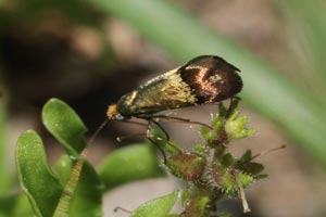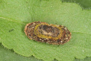 Die Eiablage erfolgt in die noch jungen Samenkapseln von Ährigem Ehrenpreis (Veronica spicata). Die Jungraupe verzehrt die Samen, dann beginnt sie, am Grunde einer Samenkapsel einen kleinen Sack anzufertigen, der manchmal die dürre Samenkapsel integriert. Damit fällt die Jungraupe zu Boden, wo sie ihren Sack ergänzt und die Samenkapsel abstösst. Sie ernährt sich jetzt von allerlei welken und dürren Pflanzenteilen. Halberwachsen überwintert sie. Im Frühling wird der Sack durch elliptischen Anbau erweitert. (Jürg Schmid)