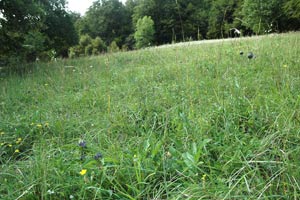 4-6, Jungraupe mit erstem Sack, auf dem Boden aufliegende Blätter des Enzians benagend: 17. Juli 2011