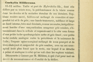 - Cochylis millierana Peyerimhoff, 1877 [Originalkombination und bis übliche Kombination]