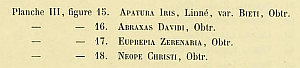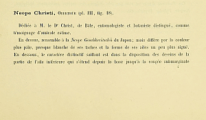 - Erstbeschreibung: Oberthür, C. (1886): Espèces nouvelles de lepidoptères du Thibet. — Études d'entomologie 11: [V]-XII, 13-38, pl. I-VII.