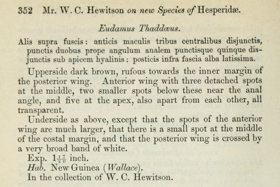 - Eudamus thaddaeus Hewitson, 1876 [Originalkombination]