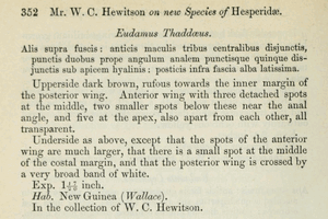 - Erstbeschreibung: Hewitson, W. C. (1876): Description of twenty new Species of Hesperidae. — The Annals and Magazine of Natural History, including Zoology, Botany, and Geology. Fourth Series 18: 347-355. — Digitalisat auf biodiversitylibrary.org: [352]
