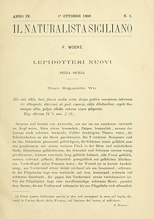 - Erstbeschreibung: Wocke, F. (1889): Lepidotteri nuovi della Sicilia. — Il Naturalista Siciliano 9 (1): 1-3. Palermo (Stabilimento tifografico Virzì).