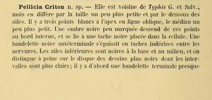 - Pellicia criton Mabille, 1898 [Originalkombination]