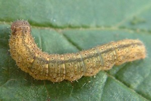 Charakteristisch für die nodosalis-Raupe ist der deutliche dunkle Rückenstreifen. (Stefan Ratering) [Forum]