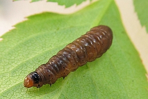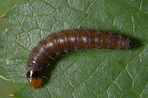 Hancock et al. (2015: 149) nennen für Großbritannien Rosa rubiginosa "or other roses, including cultivars". Die obigen Raupenbilder entstanden fast alle an Wild-Rosen, zumeist (oder ausschließlich) an Rosa canina, eine auch an einer Garten-Rose. Es hat ganz den Eindruck, dass die Raupe monophag an Arten der Gattung Rosa lebt und dass auch die Angaben zu anderen Rosaceen auf Fehlbestimmungen der Raupen oder Falter beruhen. Die Angabe zu Crataegus dürfte konkret auf Verwechslung mit Notocelia trimaculana beruhen.