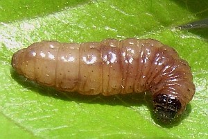Kennel (1916: 540) schrieb zu "Notocelia suffusana Z.": "Die Raupe ist rötlichbraun, der Kopf schwarz, Nackenschild und Analklappe sind dunkelbraun, letztere manchmal auch heller; sie lebt im April und Mai in versponnenen Trieben von Crataegus."