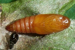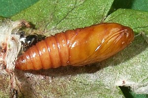Schütze (1931: 99) meldete dann zur Raupe: "Zwischen versponnenen Triebspitzen von Crataegus, Prunus spinosa, Pirus communis - Verwandlung in der Wohnung (Sorhagen)."