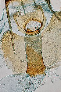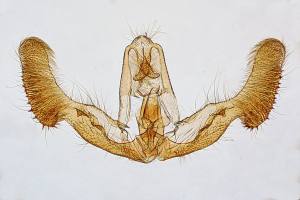 Die Länge der Socii werden manchmal als Unterscheidungsmerkmal angeführt. Bei Notocelia rosaecolana sollen sie länger sein. Wie man sieht, sind sie bei Notocelia trimaculana manchmal auch relativ lang. Die von Notocelia rosaecolana scheinen in diesem Fall schlanker zu sein. Ob das immer so ist, kann ich nicht beurteilen, da ich nur dieses eine Notocelia rosaecolana ♂ habe.