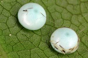 1: L1, Deutschland, Bremen, Bremerhaven, eigener Garten, Schlupf der Raupen aus u.g. Ei, 26. Mai 2006 (Foto: Carsten Wilkening), det. Carsten Wilkening