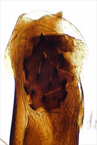 1: Deutschland, Bremen, Bremerhaven, eigener Garten, e.o. 18. Mai 2006, Weibchen nach Lichtfang zur Eiablage gebracht, (Foto: Carsten Wilkening), det. Carsten Wilkening