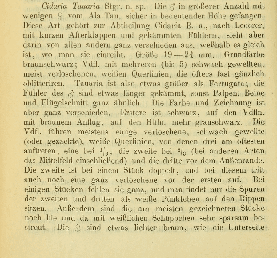 - Cidaria tauaria Staudinger, 1882 [Originalkombination]