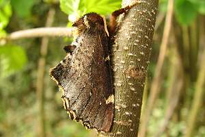 1: an einer Birke (Betula pendula) an einem halbschattigen Waldweg im Kiefernhochwald wurde eine Raupe durch Klopfen gefunden; sie befand sich auf der dem Weg zugewandten Seite des Baumes in ca. zwei Meter Höhe: Deutschland, Baden-Württemberg, Südschwarzwald, Herrenschwand, 1080 m, 13. Juli 2009 (Foto: Florian Nantscheff)Forum