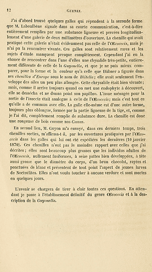 - Erstbeschreibung: Guenée, A. (1870): Notice sur l'Oecocecis guyonella Gn. et sur la Galle qu'elle produit. — Annales de la Société entomologique de France, Quatrième série 10: 5-16, pl. 7.