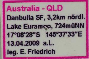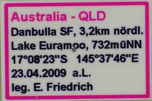 1-2: ♀, Australia, Queensland, s/w Innisfail., Wooroonooran NP, Misty Mountains, 482 m, 21. April 2009 lux; (det. & phot.: Egbert Friedrich)