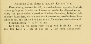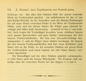 • Erstbeschreibung: Graeser, L. (1892): Neue Lepidopteren aus Central-Asien. — Berliner Entomologische Zeitschrift 37 (3): 299-318.