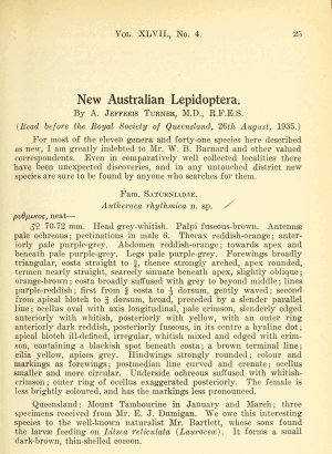 - Antheraea rhythmica Turner, 1936 [original combination]
