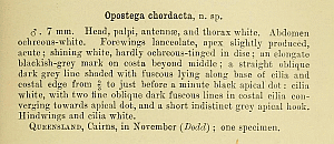 Unklare Position! Die Art passt nicht in die Gattung Opostega, wurde aber noch nicht mit einer anderen Gattung kombiniert.