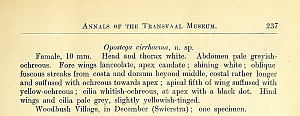 - Erstbeschreibung: Meyrick, E. (1911): Descriptions of Transvaal Micro-Lepidoptera. II. — Annals of the Transvaal Museum 2 (4): 218-240.