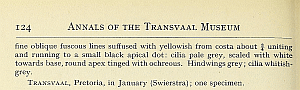 - Erstbeschreibung: Meyrick, E. (1921): Descriptions of South African Micro-Lepidoptera. — Annals of the Transvaal Museum 8 (2): 49-148. [Digitalisat auf biodiversitylibrary.org]