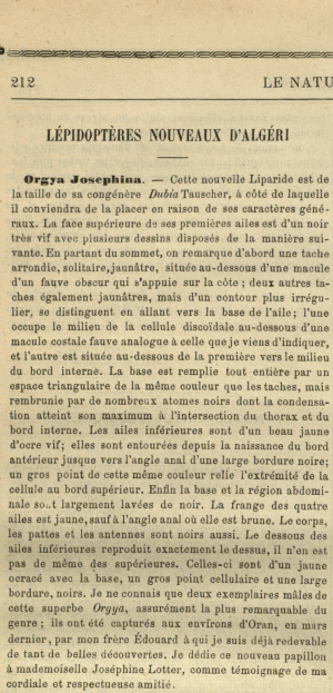 - Beschreibung als Orgyia josephina: Austaut, J.-L. (1880): Lépidoptères nouveaux d'Algéri [sic]. — Le Naturaliste 2: 212.