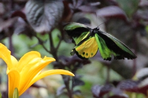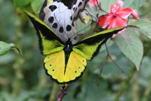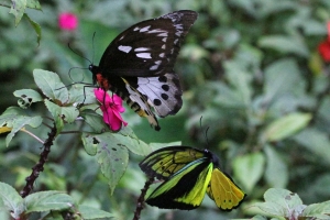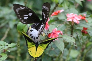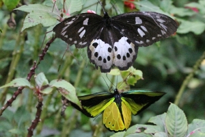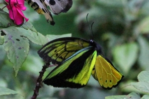 3-7: Fehlbalz Ornithoptera goliath ♂ mit Ornithoptera tithonus ♀, Indonesien, West Papua, Arfak Mountains, Papua Lorikeet Guesthous, Syoubri, Gartenanlage umgeben von Bergregenwald, 1590 m, 15. November 2017 (det. & fot.: Ernst Näf)Forum