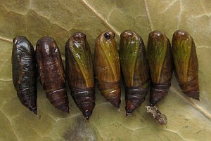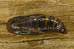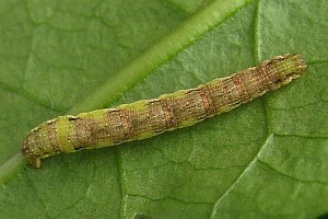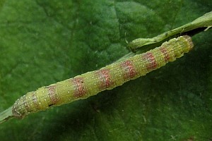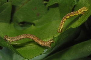 12-16: (12-15: verschiedene ausgewachsene Raupen (ca. 18 mm)), (16: Vorpuppe), Deutschland, Niedersachsen, Umg. Hannover, Bockmerholz bei Wülferode am Kronsberg, Waldparkplatz am NSG, 83 m, Eiablage (F2) am 14. Oktober 2013, Ursprungsweibchen: 7. September 2013, Lichtfang, leg. & det. Thomas Fähnrich, cult. T. Fähnrich & T. Schulz (Zuchtfotos: Tina Schulz) [Forum, viele weitere Raupenbilder]