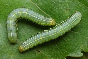 Es gibt viele grüne Eulenraupen, besonders häufig und einander ähnlich sind die folgenden: