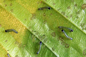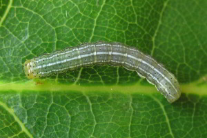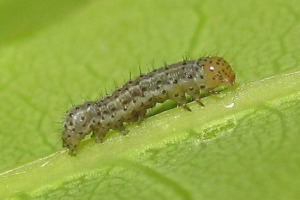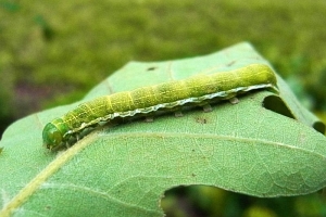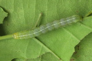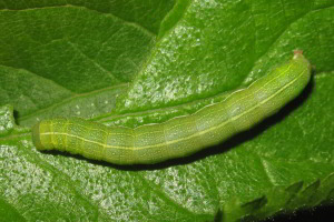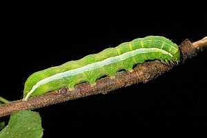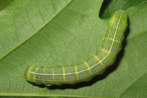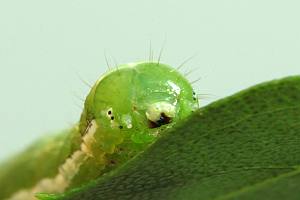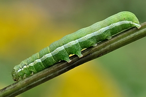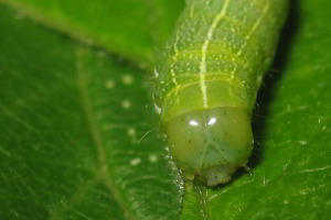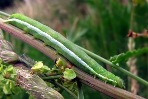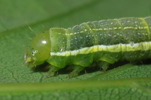Es gibt viele grüne Eulenraupen, besonders häufig und einander ähnlich sind die folgenden: