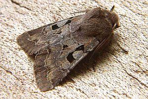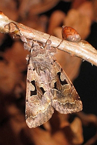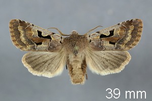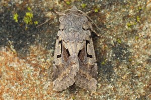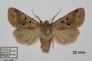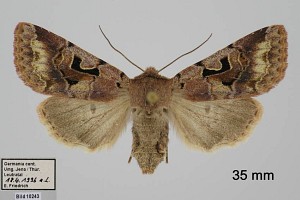 - Amphipyra tragopoginis: keine weißliche Sprenkelung und deutliche Nebenrückenlinie.
