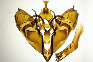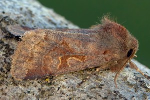 Antitype chi unterscheidet sich von Orthosia gothica durch die im Vergleich zu den Subdorsalen deutlich schwächer ausgebildete Rückenlinie. Bei Orthosia gothica ist es genau anders herum. Text: Stefan Ratering im [Forum].