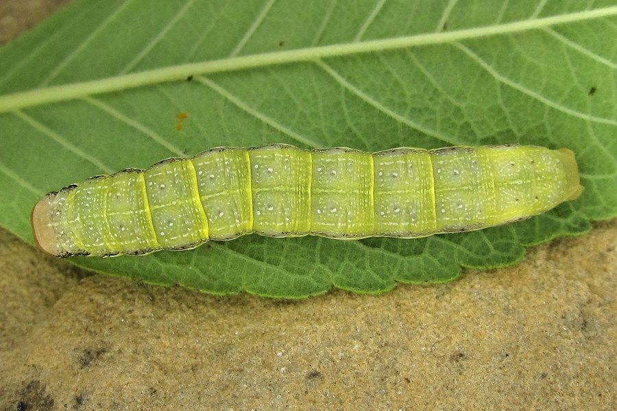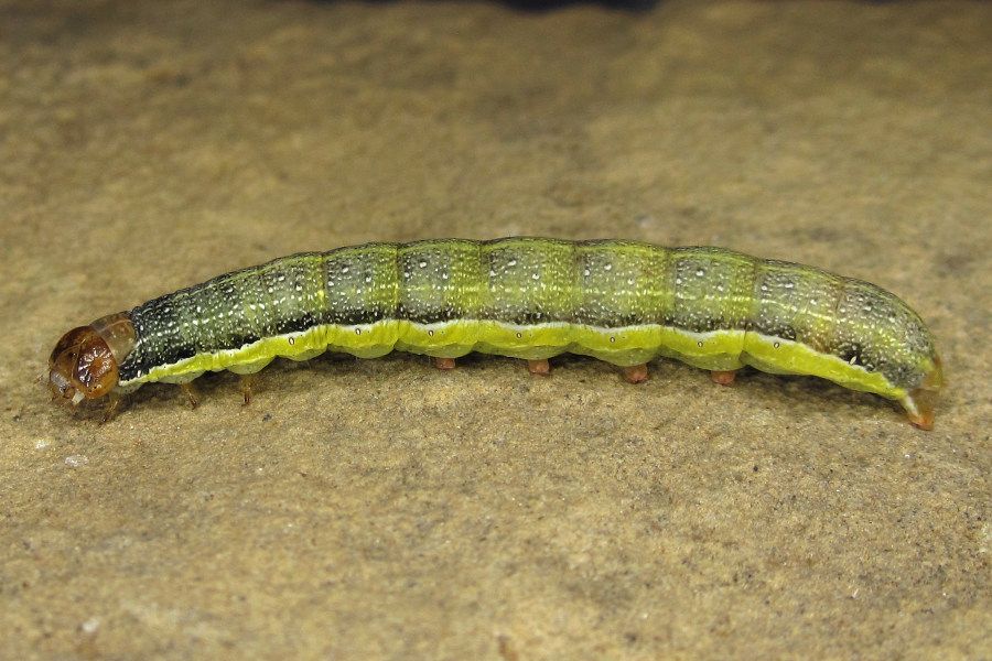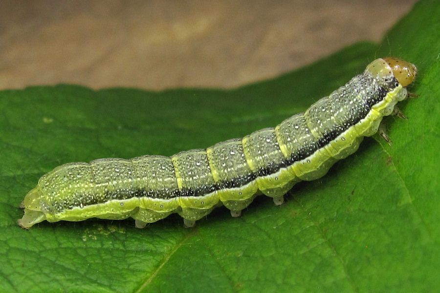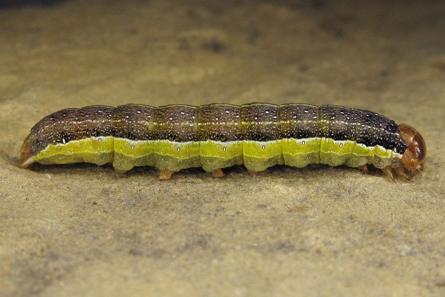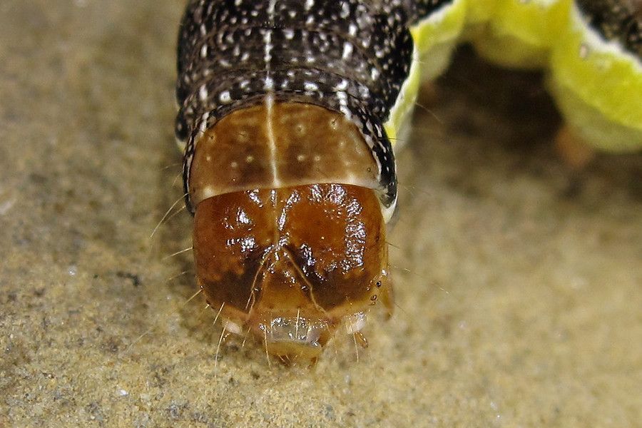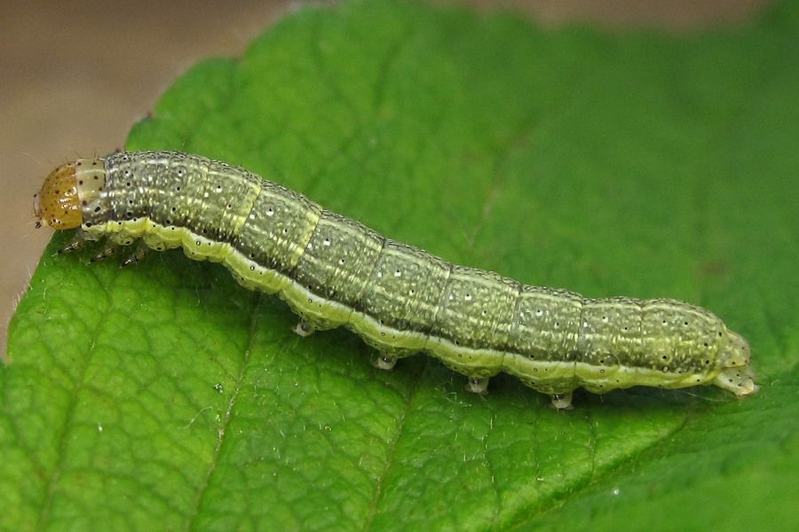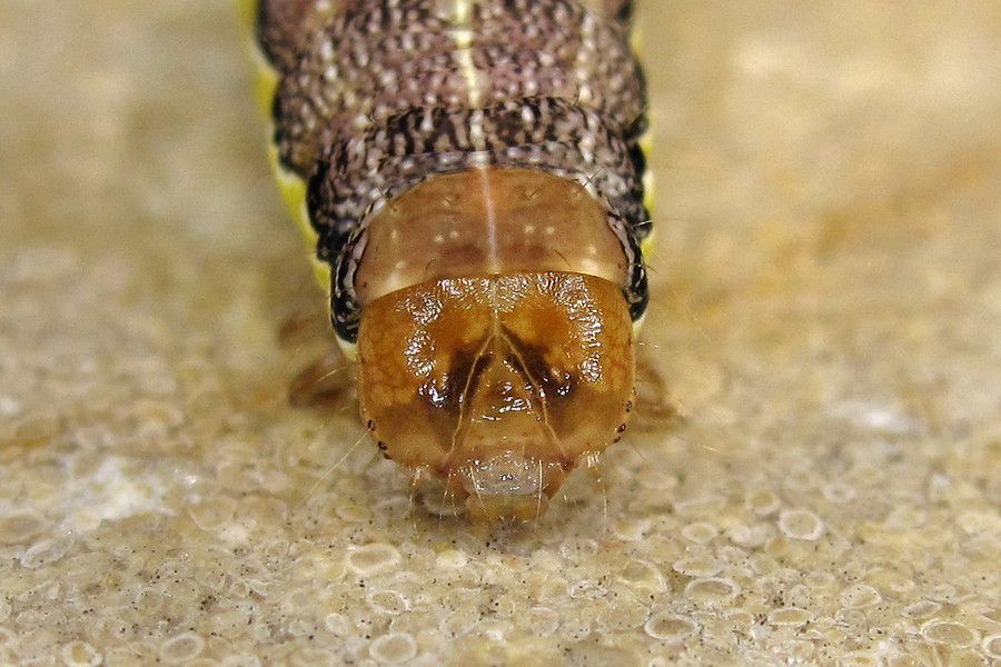 9-10: vorletztes Stadium, 25 mm: Deutschland, Niedersachsen, Landkreis Hildesheim, Sibbesse, "Groß Rippelfeld" (Muschelkalk-Abhang nördlich von Sibbesse), ca. 210 m, trockene Fruchtstände von Pentanema conyzae eingetragen am 27. April 2024, Raupen geschlüpft ab 30. April 2024, Zuchtfotos am 26. Mai 2024 (det. durch Weiterzucht, cult. & fot.: Tina Schulz)Forum