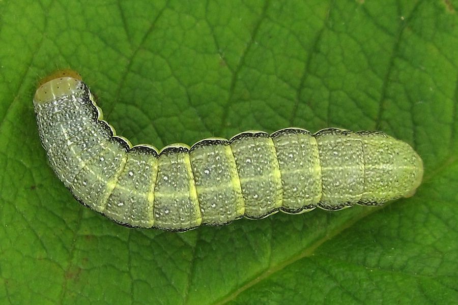 12: 35 mm: Deutschland, Niedersachsen, Landkreis Hildesheim, Sibbesse, "Groß Rippelfeld" (Muschelkalk-Abhang nördlich von Sibbesse), ca. 210 m, trockene Fruchtstände von Pentanema conyzae eingetragen am 27. April 2024, Raupen geschlüpft ab 30. April 2024, Zuchtfotos am 10. Juni 2024 (det. durch Weiterzucht, cult. & fot.: Tina Schulz)Forum