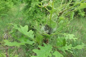 2-3: Deutschland, Sachsen, Lindenhayn, von Eichen dominierter Mischwald, Raupennester an Quercus petraea, 11. Mai 2008 (Freilandfotos: Heidrun Melzer), det. Heidrun Melzer