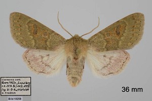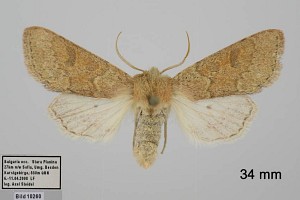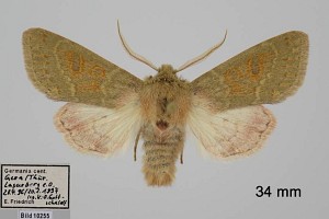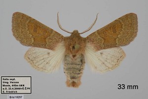 7: Deutschland, Sachsen, Lindenhayn, Eichenmischwald, Raupe leg. 13. Mai 2007 an Quercus robur, e.l. 1. März 2008 (Studiofoto: Heidrun Melzer), leg., cult. & det. Heidrun Melzer