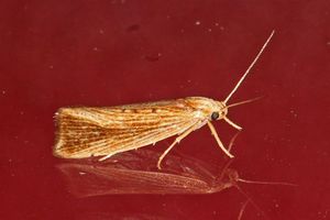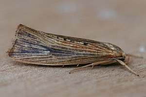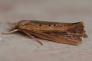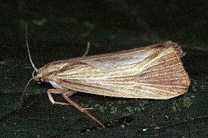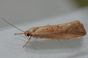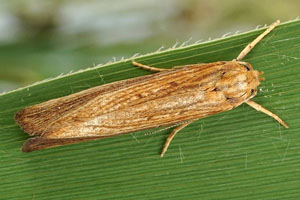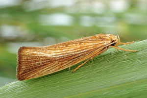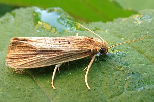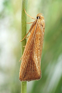 Auf [ukmoths.org.uk] heißt es: "Bur-reed (Sparganium) is the main foodplant, although other reeds and rushes are used. The larvae feed inside the stems."