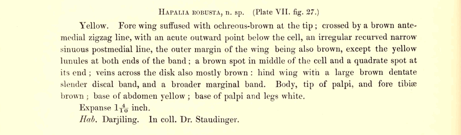 - Hapalia robusta Moore, 1888 [Originalkombination]