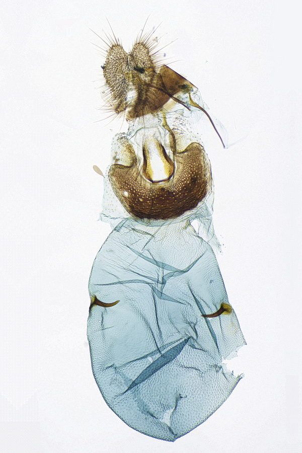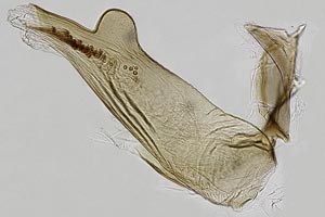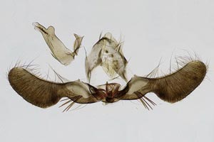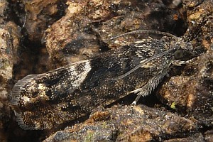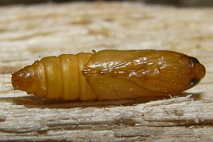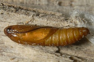 Bei Hancock et al. (2015: 211) klingt das ähnlich, wird nur noch konkreter: "Ovum. Laid in April - May on oak (Quercus spp.); site of oviposition not observed but probably on young galls ['oak -apples'] of the cynipid wasp, Biorhiza pallida (Olivier). Larva [...] June - August; feeds on the spongy tissue of growing 'oak-apples'; the presence of larva is sometimes indicated by an exudation of frass from the gall; when fully fed in late summer constructs a cocoon in the larval habitation, in an old gall, under bark, or between dead leaves". Die Angaben dürften weitgehend auf Wood (1889) zurückgehen - und mit Unsicherheiten hinsichtlich der Artbestimmung behaftet sein.