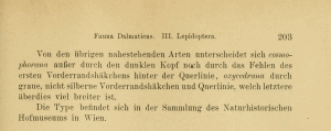 - Erstbeschreibung: Zerny, H. (1920): Fauna Dalmatiens. III. Lepidoptera. — Zoologische Jahrbücher. Abteilung für Systematik, Geographie und Biologie der Tiere 42: 195-204. Jena (Gustav Fleischer).