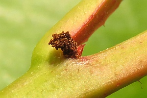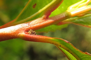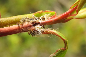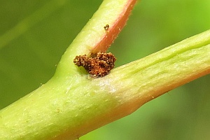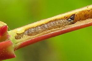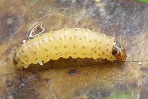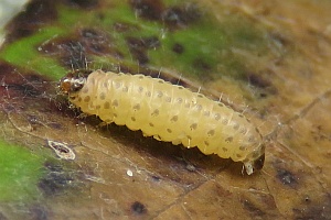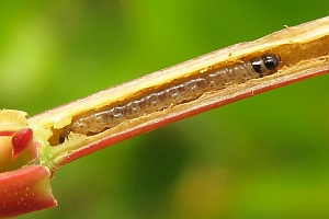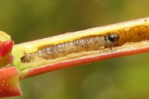 Nach der Erstbeschreibung von Constant (1888) lebt die Raupe in den Alpes-Maritimes im Mai / Juni in den krautigen Gipfelteilen der jungen Zweigen des Erdbeerbaums, von denen aus sie die zweignahen Blattbereiche unterseits befrisst und mit Seidenfäden an den Zweig anspinnt.