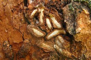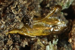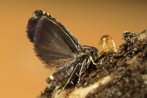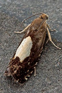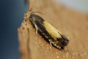 Schon Gartner (1865: 161) wusste: "Die Raupe lebt unter der Rinde von Ahornstämmen." - ein Muster, das sich seither vielfach bestätigt hat. Doch die Raupenfunde unter der Ahorn-Rinde betreffen Funde ausgewachsener Raupen im Winter und Frühjahr - erfolgt hier auch die Eiablage ? Hancock et al. (2015: 218) schreiben nichts zum frühsommerlichen Eiablageort an der Pflanze, jedoch berichten sie zur Raupe: "August - April; feeds in the seeds; when fully fed in September descends on a silken thead to the lower part of the tree and hibernates in a strong cocoon spun under a flake of bark on the trunk or a lower branch, sometimes in a crevice." Die Raupe lebt demnach in ihrer Fressphase in Ahorn-Früchten - genau wie bei den verwandten Arten. Die Rinde dient "nur" als Überwinterungsplatz. Rudolf Bryner - siehe Kapitel "Lebensweise und Nachweismethoden" bestätigt das ausdrücklich.