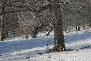 Obwohl man den wipfelbewohnenden Falter nur selten zu Gesicht bekommt, scheint die Art durchaus häufig zu sein, jedenfalls da, wo große, alte Bergahorne (Acer pseudoplatanus) mit schuppiger Stammrinde stehen. Ich fand die Raupen im Waldinnern, in Parkanlagen von Siedlungen oder, wie im Bild 2, auf einer Viehweide mit solitär stehenden Bäumen. Beim Lösen der stammaufwärts aufstehenden Rindenschuppen findet man meistens viele alte, leere Kokons, die offensichtlich Jahre überdauern können. Die noch aktiven enthalten eine weißliche Raupe im Vorpuppenstadium. Die Kokons sind zu fast 100 % an der losgelösten Rindenschuppe und nicht am darunter liegenden Stamm festgesponnen. (Autor: Rudolf Bryner) [Forumsbeitrag 1], [Forumsbeitrag 2] und [Forumsbeitrag 3]