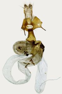 1: Genitalpräparat eines im Forum angefragten ♂, Österreich, Steiermark, Fischbacher Alpen, St. Kathrein am Offenegg, Sommeralm, 1400 m, am Licht, 3. Juni 2018 (det., präp. & Foto: Horst Pichler), conf. Axel SteinerForum