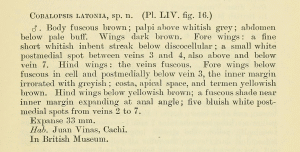 - Erstbeschreibung: Schaus, W. (1913): New Species of Rhopalocera from Costa Rica. — Proceedings of the General Meetings for Scientific Business of the Zoological Society of London 1913 (3-4): 339-367, pl. L-LIV. — Digitalisat auf biodiversitylibrary.org: [363], [pl. LIV fig. 16]
